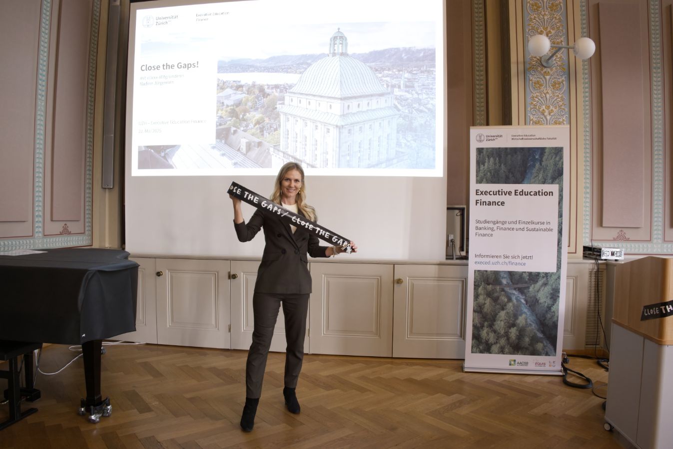 Wie kannst du deine Finanzen aktiv gestalten und bestehende Lücken schliessen? Diese Frage beleuchtete Nadine Jürgensen in ihrer Keynote «Close the Gaps!» an unserem ausgebuchten Event an der Universität Zürich.